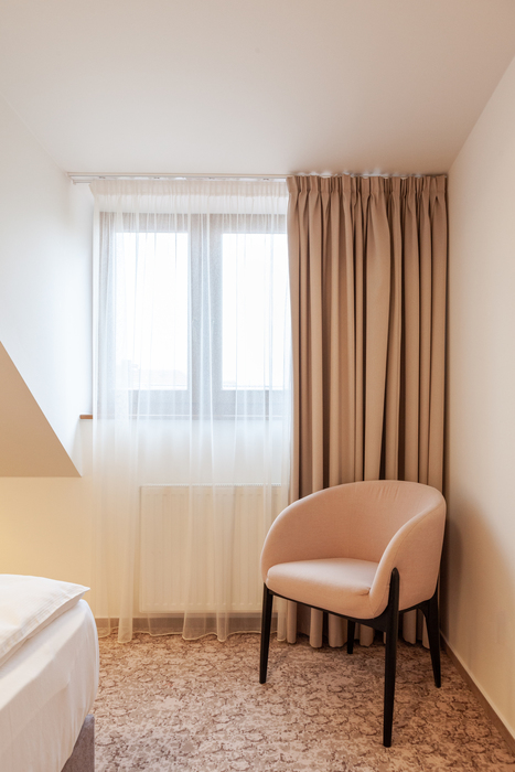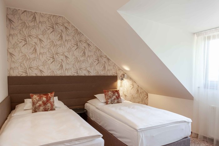 Bohatá bufetová snídaně je v ceně ubytování. Podáváme ji v čase 7.30 - 10.00. Všechny pokoje v našem hotelu jsou zařízené v jednoduchém a vzdušném stylu. Čtyřhvězdičkové pokoje jsou vybavené nábytkem z masivního dřeva, což ubytování propůjčuje luxusní a stylový vzhled. Pokoje i koupelny mají nadstandardní velikost, působí velkoryse. Všechny pokoje mají připojení na vysokorychlostní internet. Wi-fi zdarma je samozřejmostí. Na všech pokojích je také televizor. K dispozici jsou samozřejmě ručníky a fén na vlasy v každé koupelně. Na pokoje hosté vstupují přes elektronickou magnetickou kartu, což zajišťuje naprostou bezpečnost věcí v pokoji. Na všech pokojích je umístěný trezor, do kterého můžete bezpečně schovat všechny své cennosti.