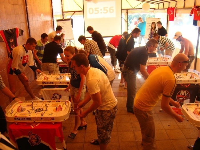 Prožijte hokejový turnaj století tentokrát ve stolním táhlovém hokeji Stiga. Po krátké motivační projekci reálných hokejových momentů a technických fines plastových figurek Stiga hokeje začíná turnaj zápasy v základních skupinách, aby vrcholil zápasy v play-off. K dispozici 8 stolních hokejů.