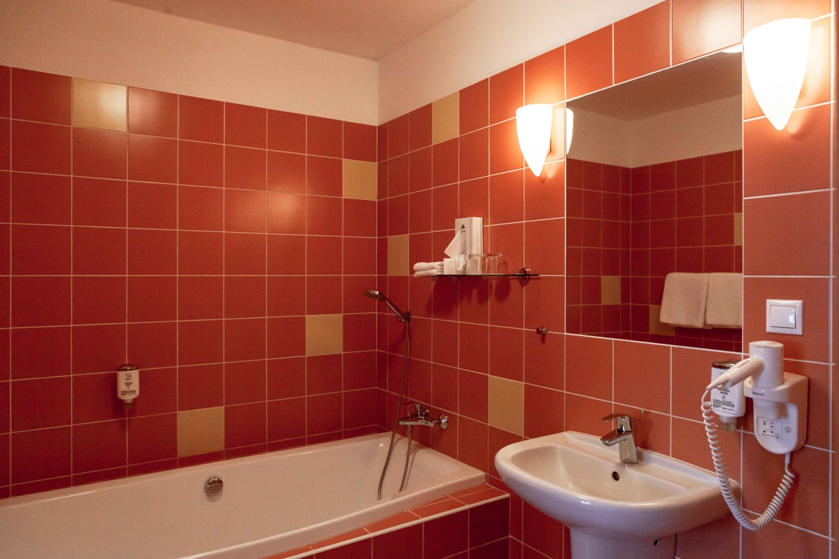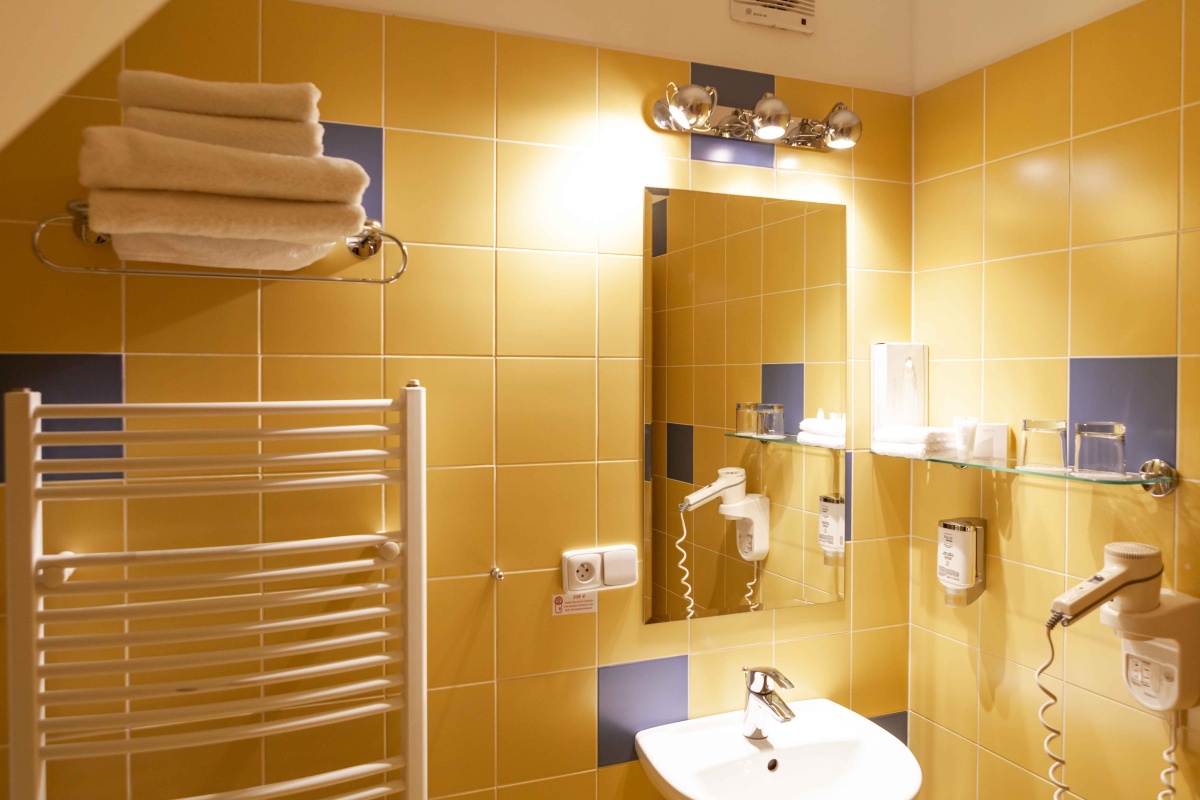 V hotelu sice není výtah, ale polovina čtyřhvězdičkových pokojů je v přízemí budovy. Jeden pokoj je zařízený pro ZTP hosty.
