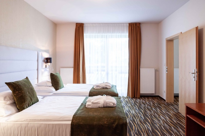 Všechny pokoje v našem hotelu jsou zařízené v jednoduchém a vzdušném stylu. Čtyřhvězdičkové pokoje jsou vybavené nábytkem z masivního dřeva, což ubytování propůjčuje luxusní a stylový vzhled. Pokoje i koupelny mají nadstandardní velikost, působí velkoryse. Všechny pokoje mají připojení na vysokorychlostní internet.